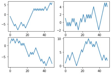 - A와 B가 동전 던지기 게임을 한다고 하자. 동전을 한번 던졌을 때, 앞면이 나오면 A가 1점을 얻고, B는 1점을 잃는다. 뒷면이 나오면 A가 1점을 잃고, B가 1점을 얻게 된다. A와 B가 각각 0점으로부터 시작해서 동전을 50번 던지는 경우, A의 누적점수를 알아보고자 한다.