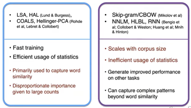 - Linear Algebra Based Methods : LSA, HAL, COALS, Hellinger-PCA