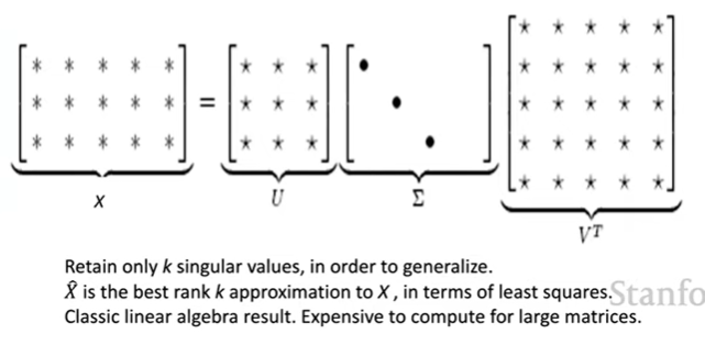 - Co-occurrence Matrix에 대해 SVD를 진행하여 $X = U\Sigma V^T$ 형태로 분해.
