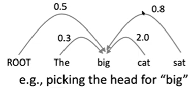 ex) 'big'이 ROOT에 얼마나 의존하는가 / 'big'이 'cat'에 얼마나 의존하는가 점수를 얻음 - 이를 잘 하기 위해서는 두 단어의 의미를 아는 것 이상으로 "contextual" 문맥 정보를 이해하는 것이 매우 중요함. big 전 후에 무엇이 있는지 등을 문장의 의존성 표현으로 변형.