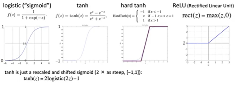 - 대표적인 non-linear function : logistic(sigmoid), tanh, hard tanh, ReLU
