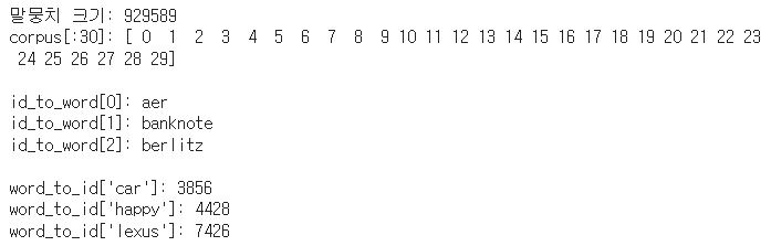 id_to_word : 단어 ID에서 단어로의 딕셔너리