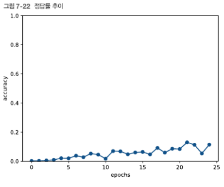 - 에폭마다 테스트 데이터 문제 중 몇 개를 풀게 하여 올바르게 답했는지를 채점했다.