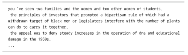- 문법적으로 이상한 문장도 있지만, 그럴듯한 문장도 만들어 준다. 더 자연스러운 결과를 위해서는 더 나은 언어모델을 활용하면 된다.